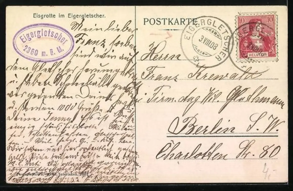 AK Eigergletscher, Eisgrotte mit Bergsteigern