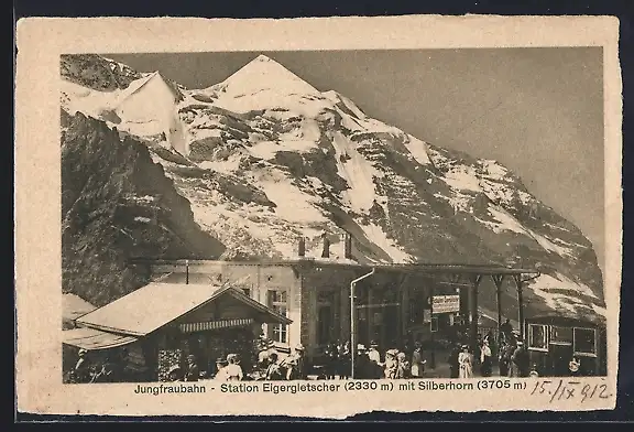 AK Eigergletscher, Station der Jungfraubahn mit Silberhorn