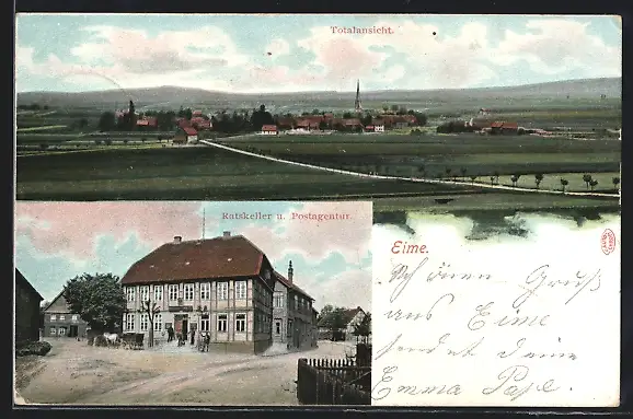 AK Eime, Ratskeller u. Postagentur, Ortsansicht