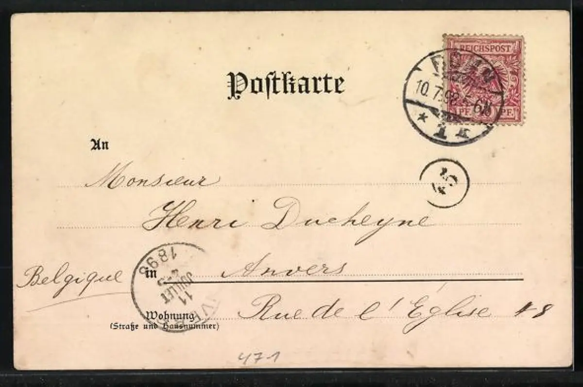 alte Ansichtskarte, gelaufen 1898, guter Zustand