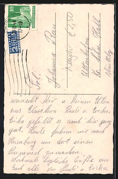 alte Ansichtskarte, gelaufen 1949, Eckknick re. oben, guter Zustand