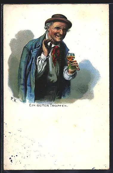 AK Ein guter Tropfen, Weingeniesser mit Weinglas