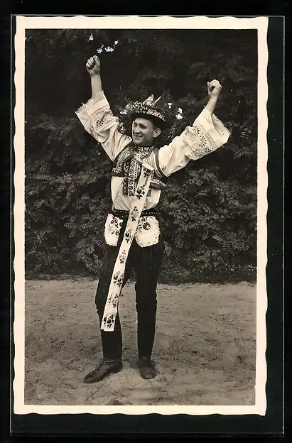 AK Ein jubelnder junger Mann in tschechischer Tracht