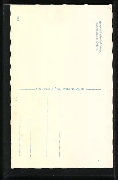 Personenbezogene Daten auf der Rückseite der Karte wurden durch blauen Textmarker unkenntlich gemacht. Die blauen Stellen sind auf die Vorderseite durchgeweicht und wirken sich negativ auf das Postkartenfoto aus