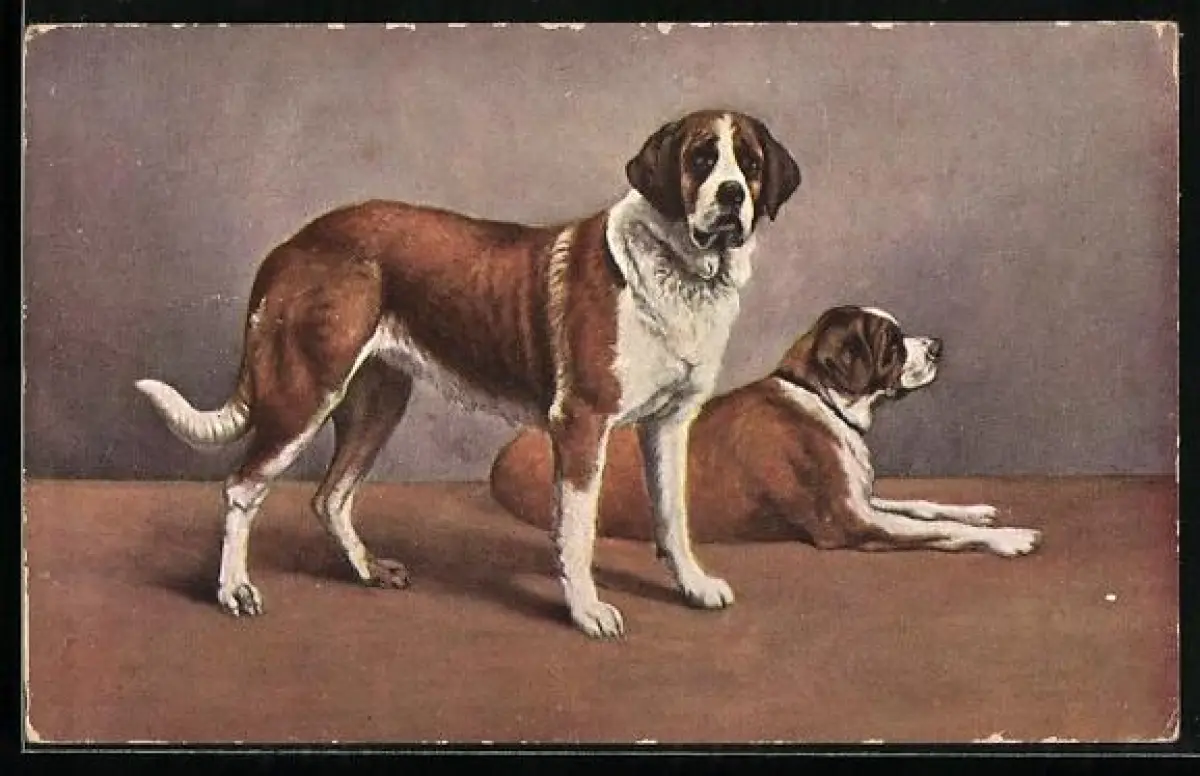 AK Ein liegender und ein stehender Bernhardiner