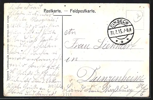 alte Ansichtskarte, gelaufen 1915, Eckknick li. oben, guter Zustand
