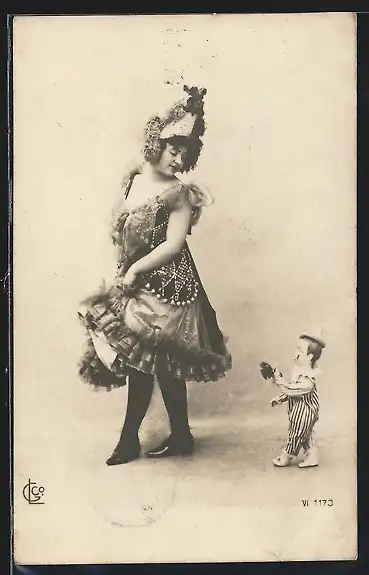 AK Eine Tänzerin mit einer kleinen Puppe