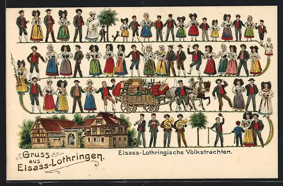 AK Eingeladene Gäste in elsass-lothringischen Trachten