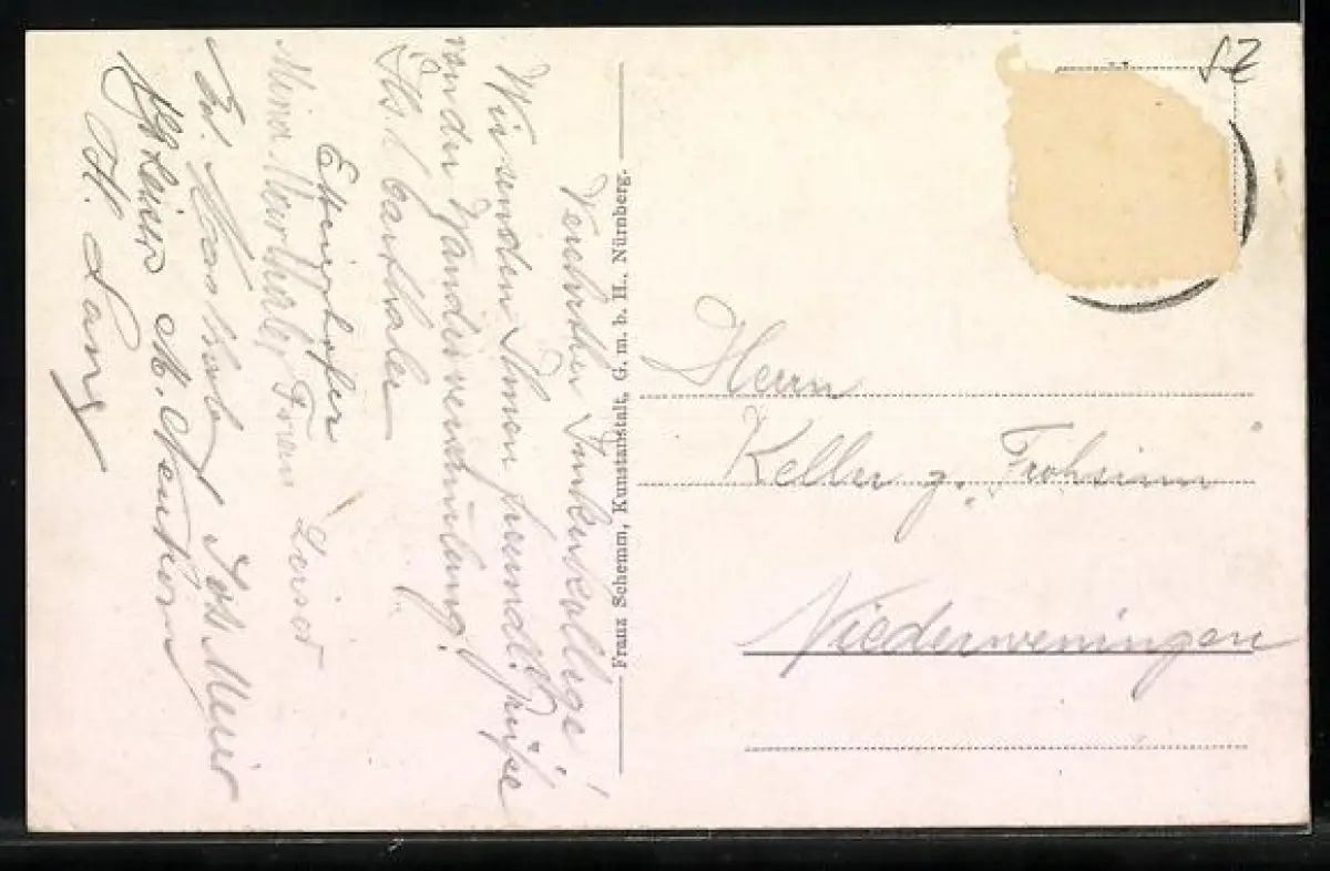 alte Ansichtskarte, gelaufen, Briefmarke entfernt, rückseitig Oberflächenschaden, Eckknicke li. oben u. re. unten, guter Zustand