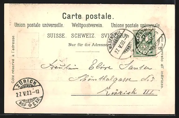 alte Ansichtskarte, gelaufen 1900, Eckknicke unten, guter Zustand