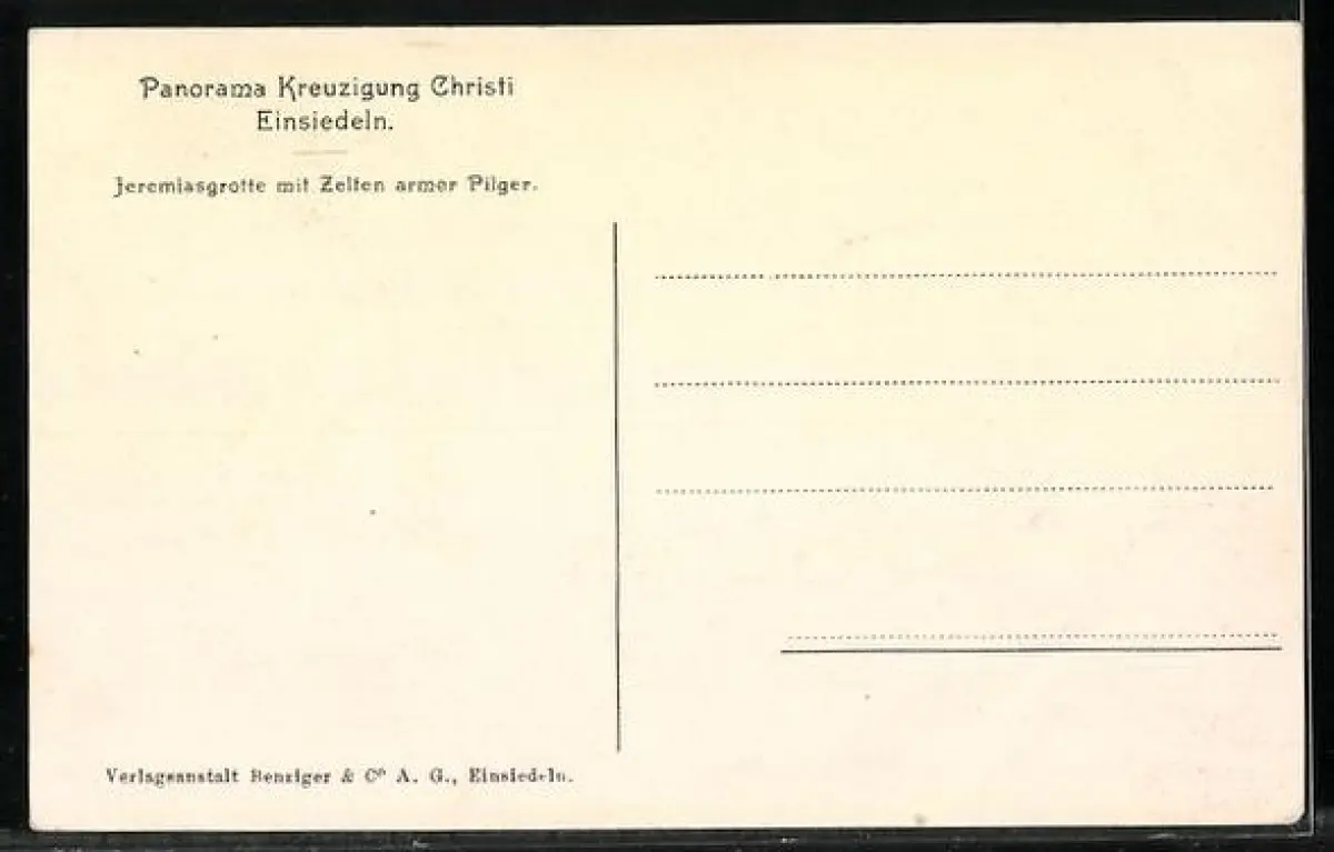 AK Einsiedeln, Panorama Kreuzigung Christi. Jeremiasgrotte mit Zelten armer Pilger