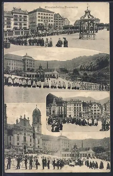 AK Einsiedeln, Regligiöse Prozession durch die Ortschaft