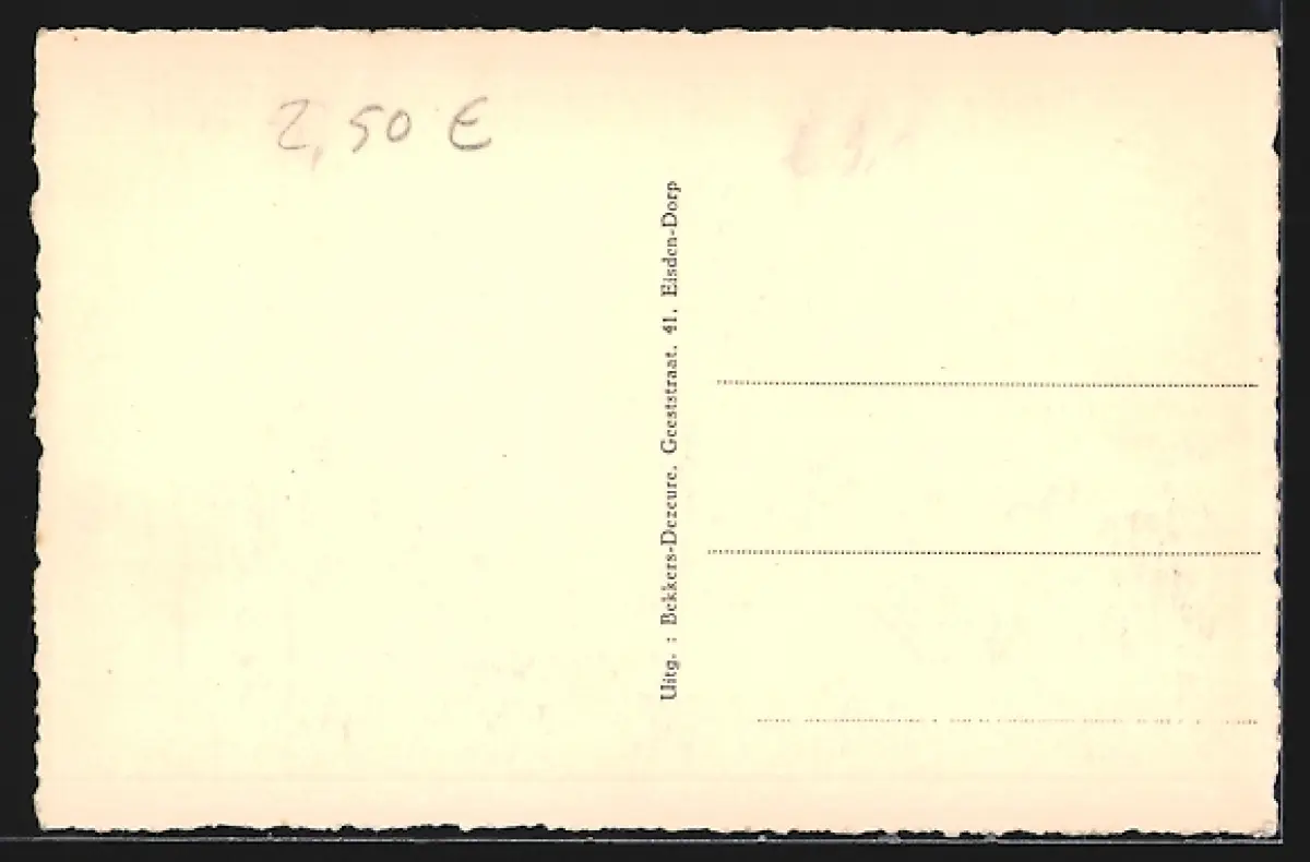 Personenbezogene Daten auf der Rückseite der Karte wurden durch blauen Textmarker unkenntlich gemacht. Die blauen Stellen sind auf die Vorderseite durchgeweicht und wirken sich negativ auf das Postkartenfoto aus