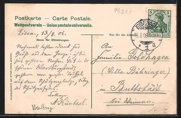 alte Ansichtskarte, gelaufen 1906, Eckknick li. unten, guter Zustand