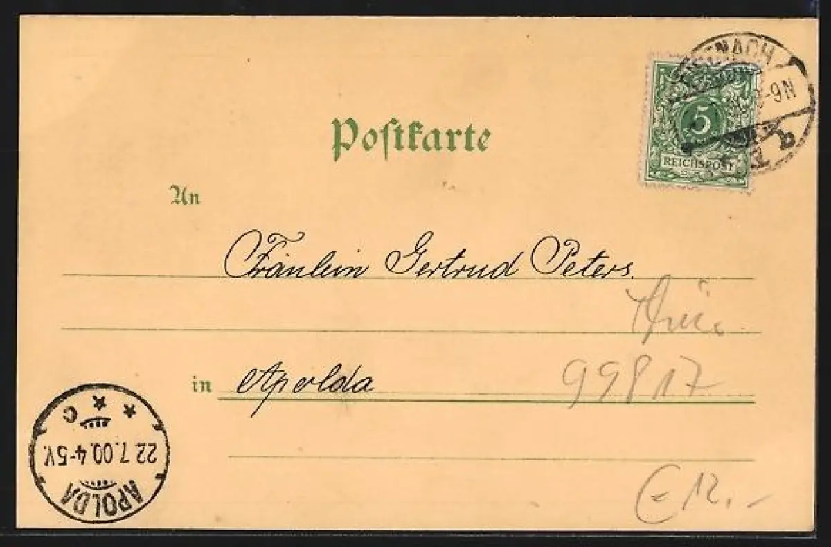 alte Ansichtskarte, gelaufen 1900, guter Zustand