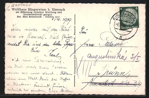 AK Eisenach / Thüringen, Restaurant Waldhaus Sängerwiese