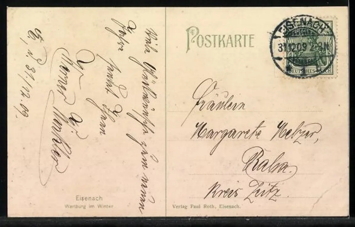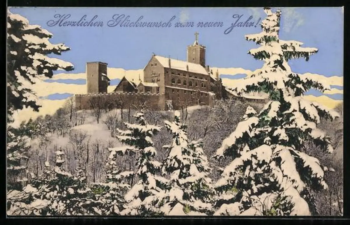 AK Eisenach, Wartburg im Winter, Neujahrsgruss
