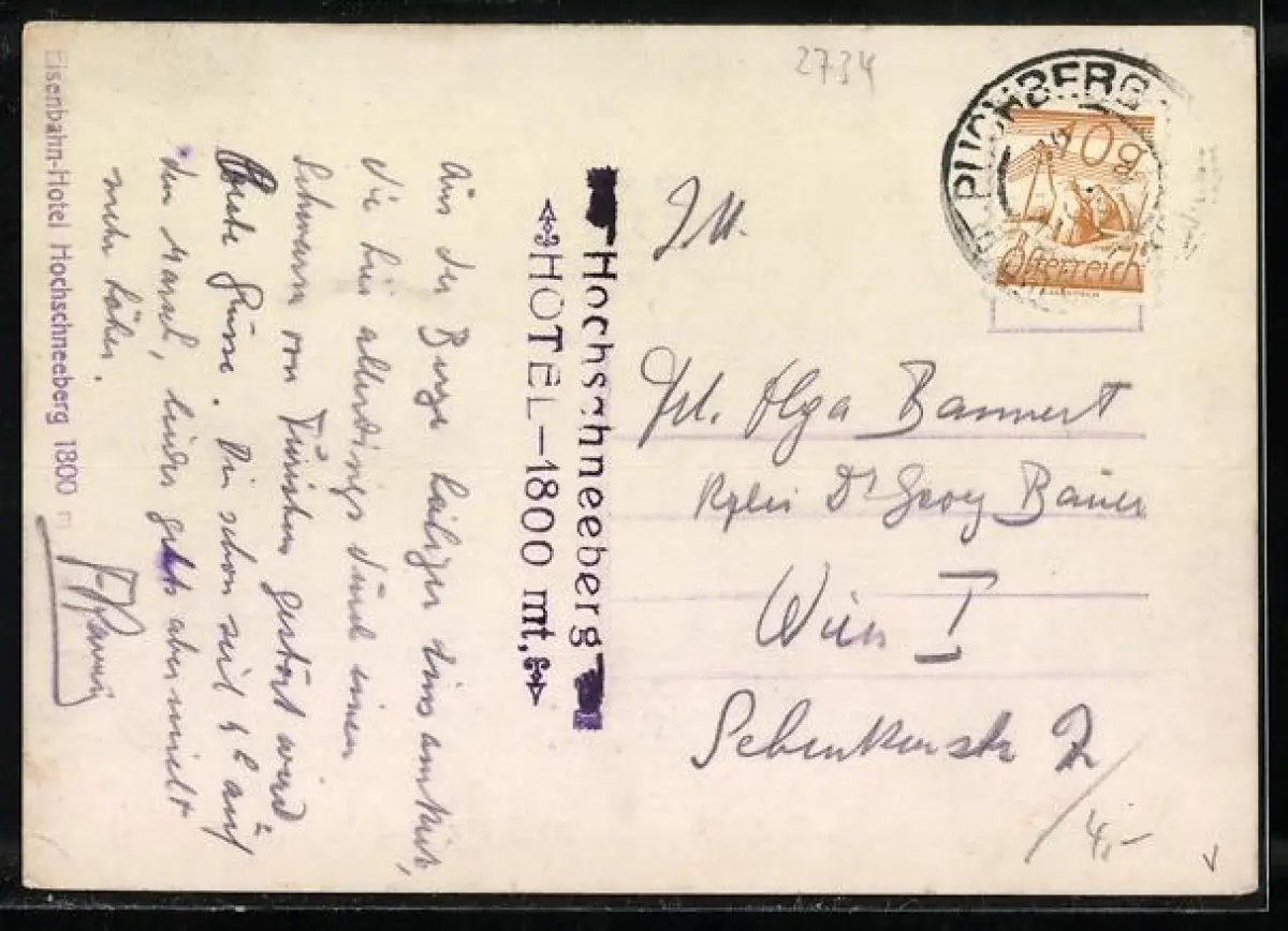 AK Eisenbahn-Hotel auf dem Hochschneeberg