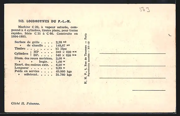 AK Eisenbahn, Locomotives du P.-L.-M., Machine C 22