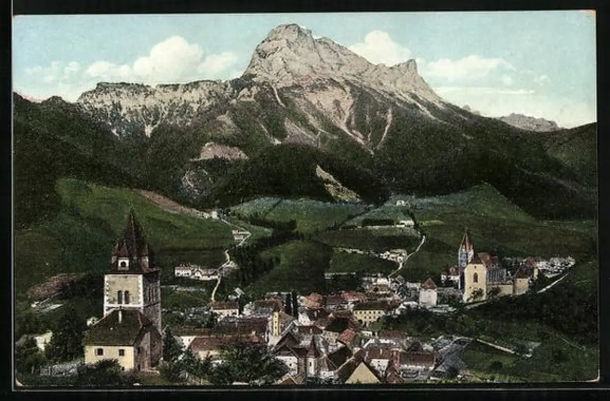 AK Eisenerz, Totalansicht mit Gebirgspanorama