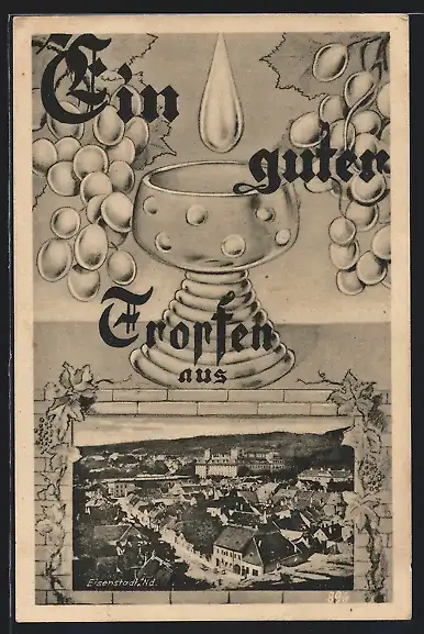 AK Eisenstadt /Nd., Ortsansicht aus der Vogelschau, Weinglas Römer