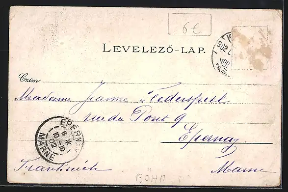 gelaufen 1902, Eckknick li. unten, Briefmarke entfernt, guter Zustand