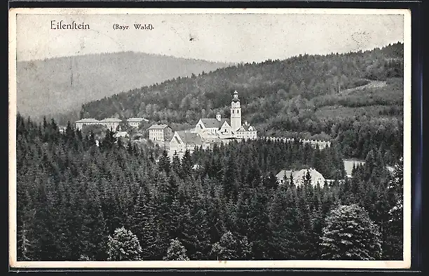 AK Eisenstein /Bayr. Wald, Panorama mit Kirche