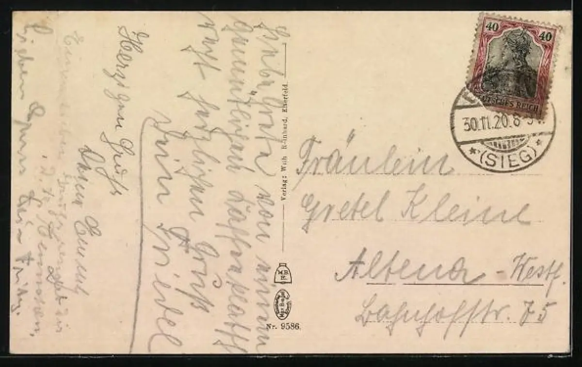 alte Ansichtskarte, gelaufen 1920, Briefmarke entfernt, guter Zustand