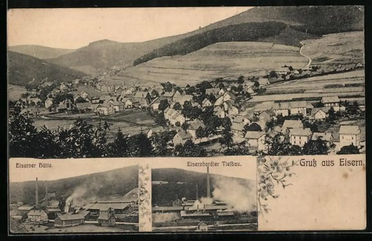 AK Eisern, Totalansicht des Ortes, Eiserner Hütte, Eisernhardter Tiefbau