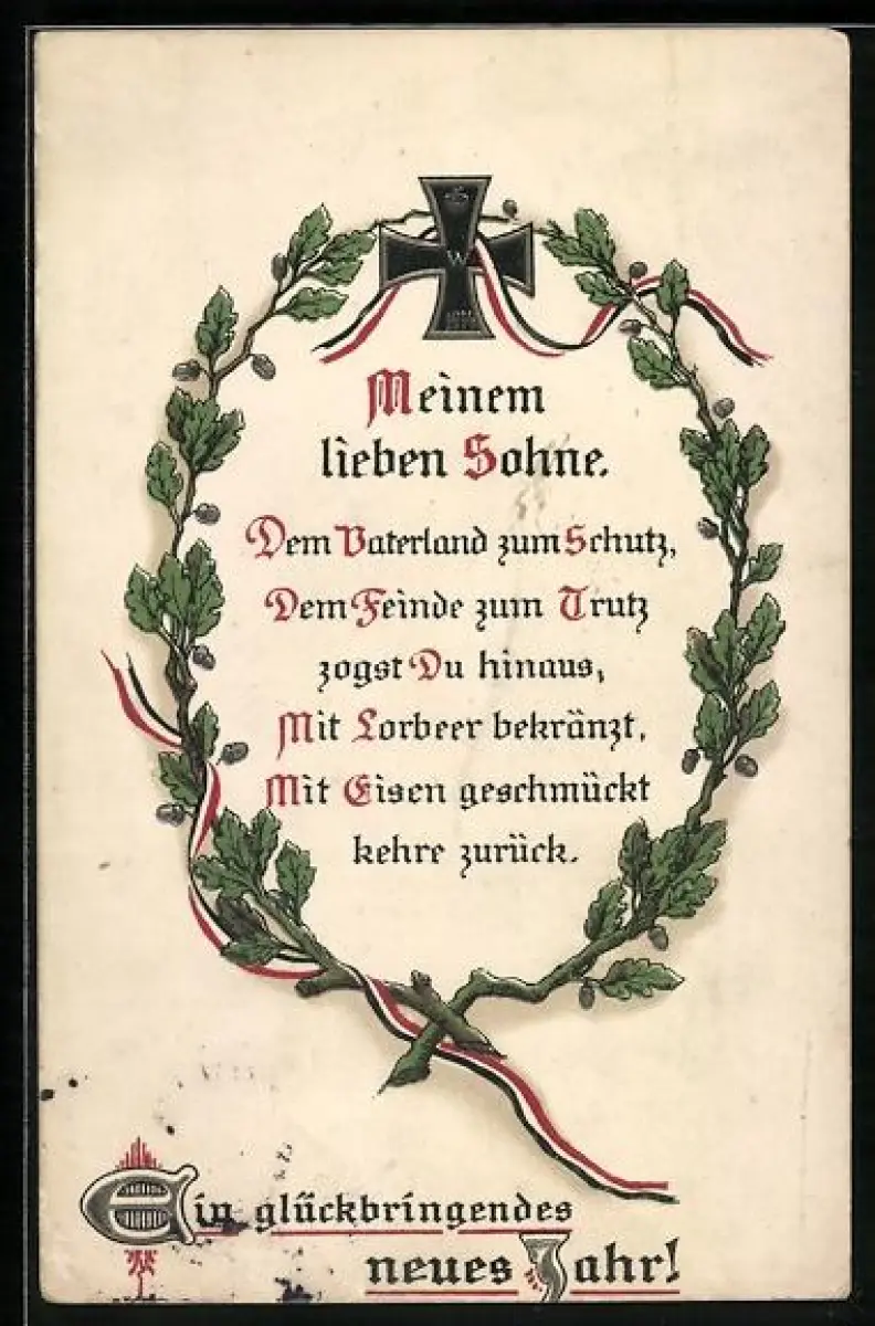AK Eisernes Kreuz, Lorbeerkranz, Reichsfarben, Meinem lieben Sohne, dem Vaterland zum Schutz, dem Feinde zum Trutz...