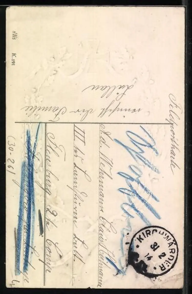 gelaufen 1914, Eckknicke li. unten, guter Zustand