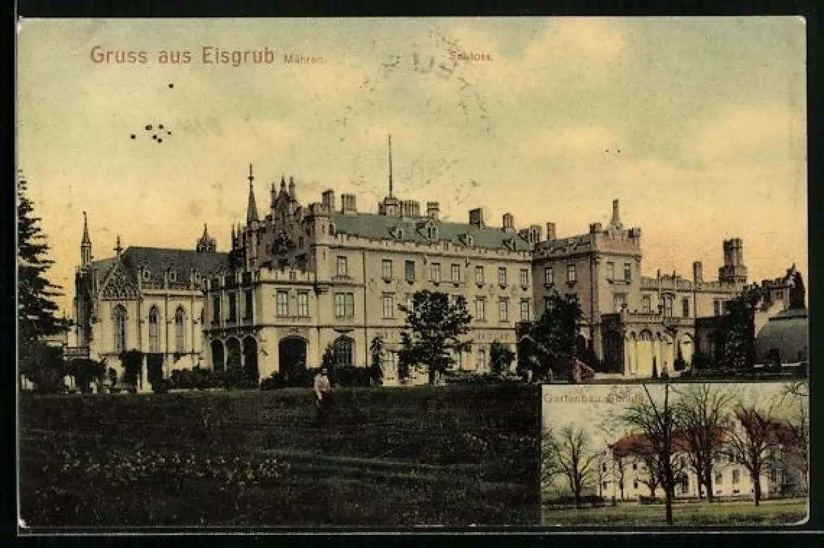 AK Eisgrub /Mähren, Gartenbau-Schule, Schloss