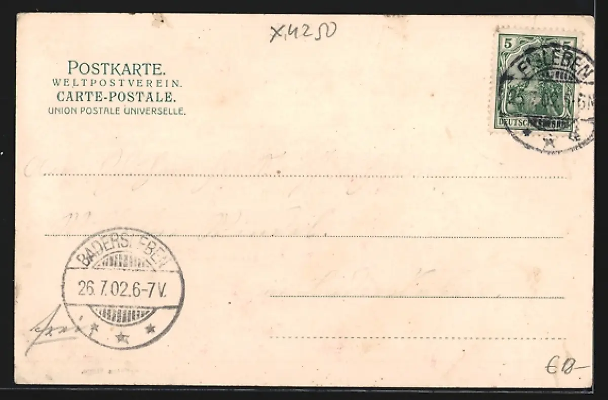 alte Ansichtskarte, gelaufen 1902, Einriss oben links, guter Zustand