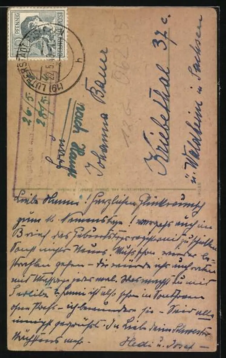 alte Ansichtskarte, gelaufen, Stempelspur, Eckknicke rechts, guter Zustand