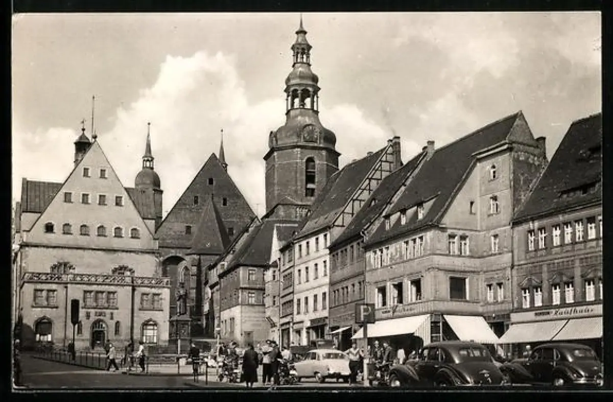 AK Eisleben, Marktplatz mit Kaufhäusern