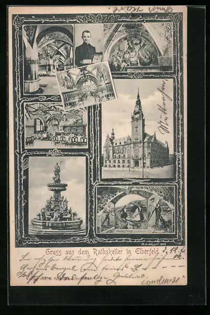 AK Elberfeld, Gasthaus Rathskeller, Aussen- und Innenansichten