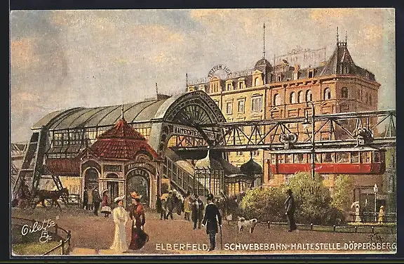 AK Elberfeld, Schwebebahn-Haltestelle Döppersberg mit Spaziergängern