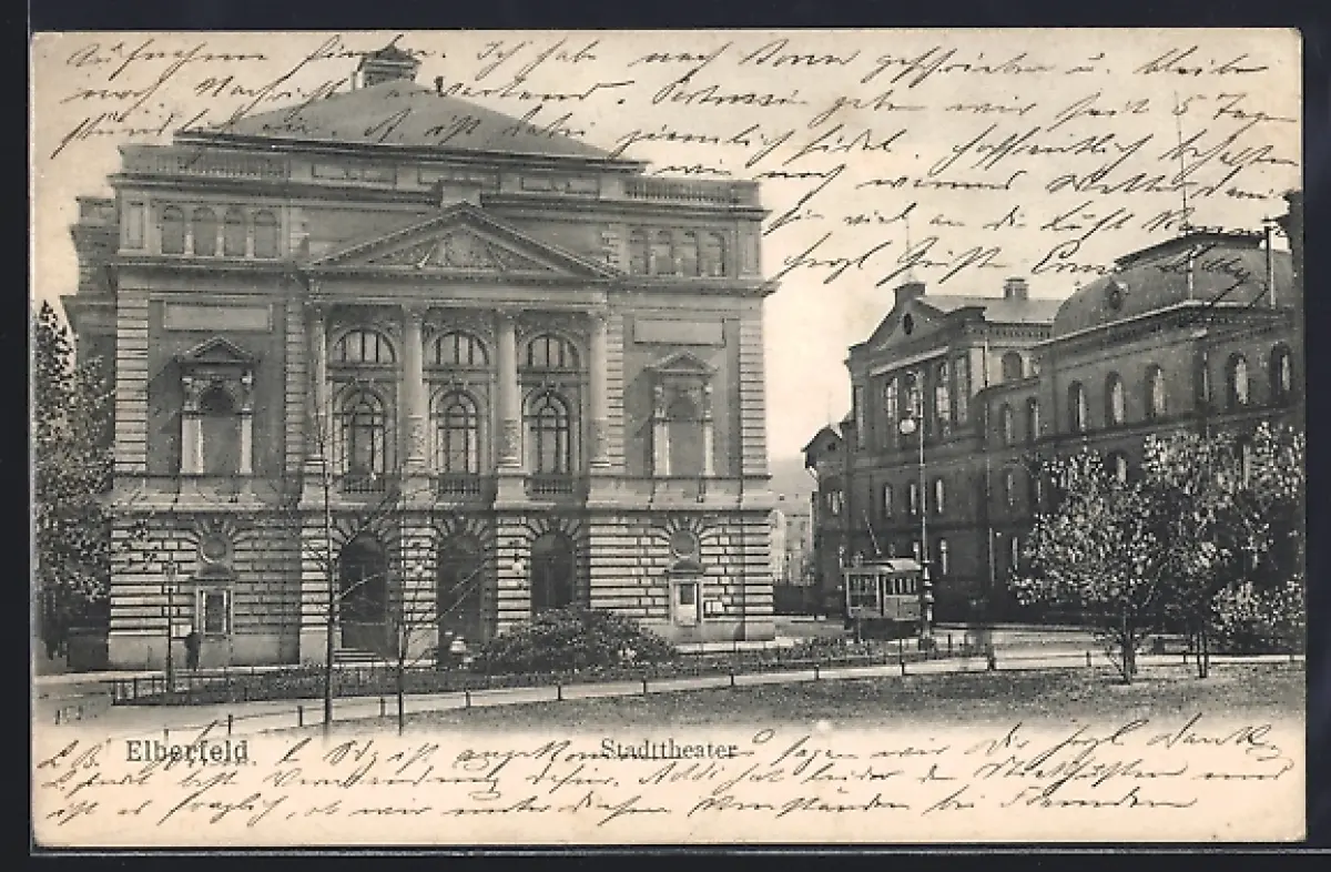 AK Elberfeld, Stadttheater mit Strassenbahn