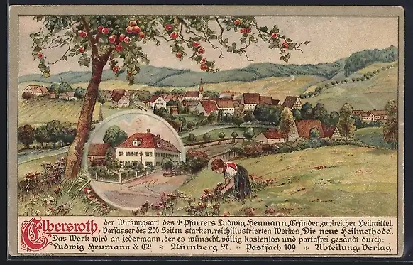 AK Elbersroth, Landschaftsansicht mit Frau und Obstbaum