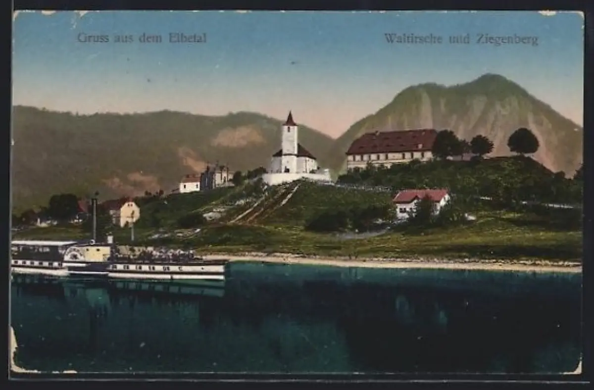 AK Elbetal, Uferpartie mit Waltirsche, Ziegenberg und Dampfer Kaiser Wilhelm