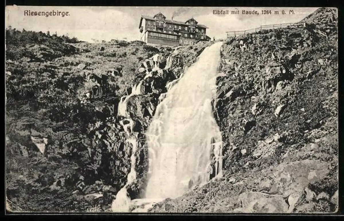 AK Elbfallbaude /Riesengebirge, Elbfall mit Baude