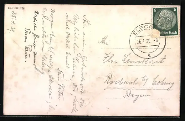 alte Ansichtskarte, gelaufen 1939, Briefmarke teilw. entfernt, guter Zustand