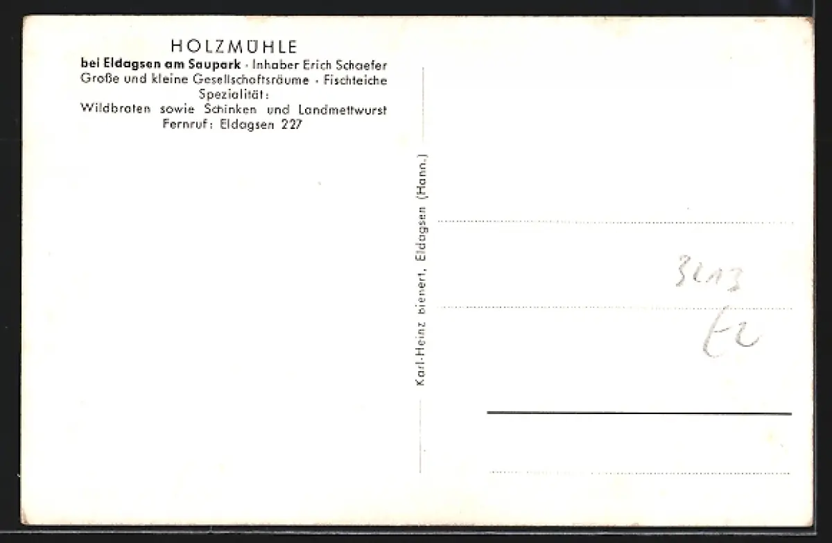 AK Eldagsen / Elze, Gasthaus Holzmühle, Inh. Erich Schaefer
