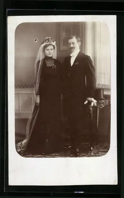 AK Elegant gekleidetes Paar in Hochzeitsmode