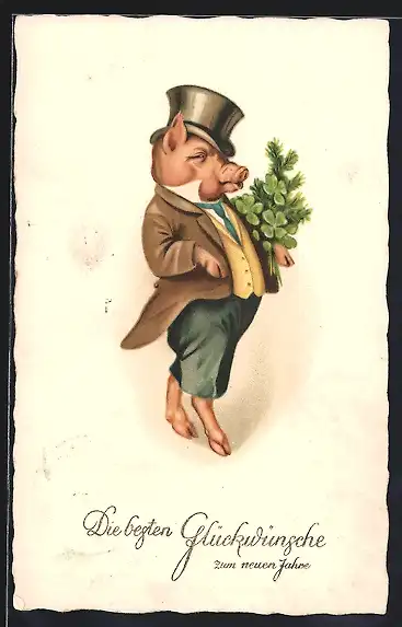 AK Elegant gekleidetes Schwein bringt Neujahrsgrüsse