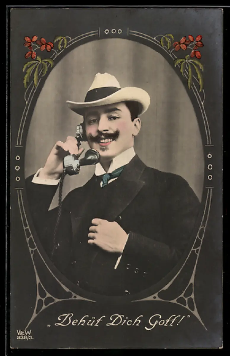 AK Eleganter Herr mit einem Telefonhörer