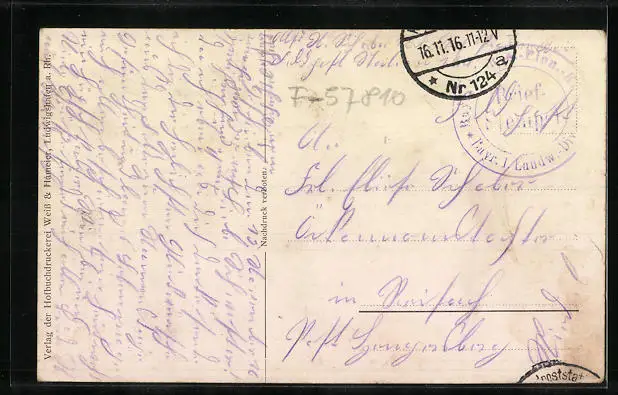 alte Ansichtskarte, gelaufen 1916 als Feldpost, Stempelspur, guter Zustand