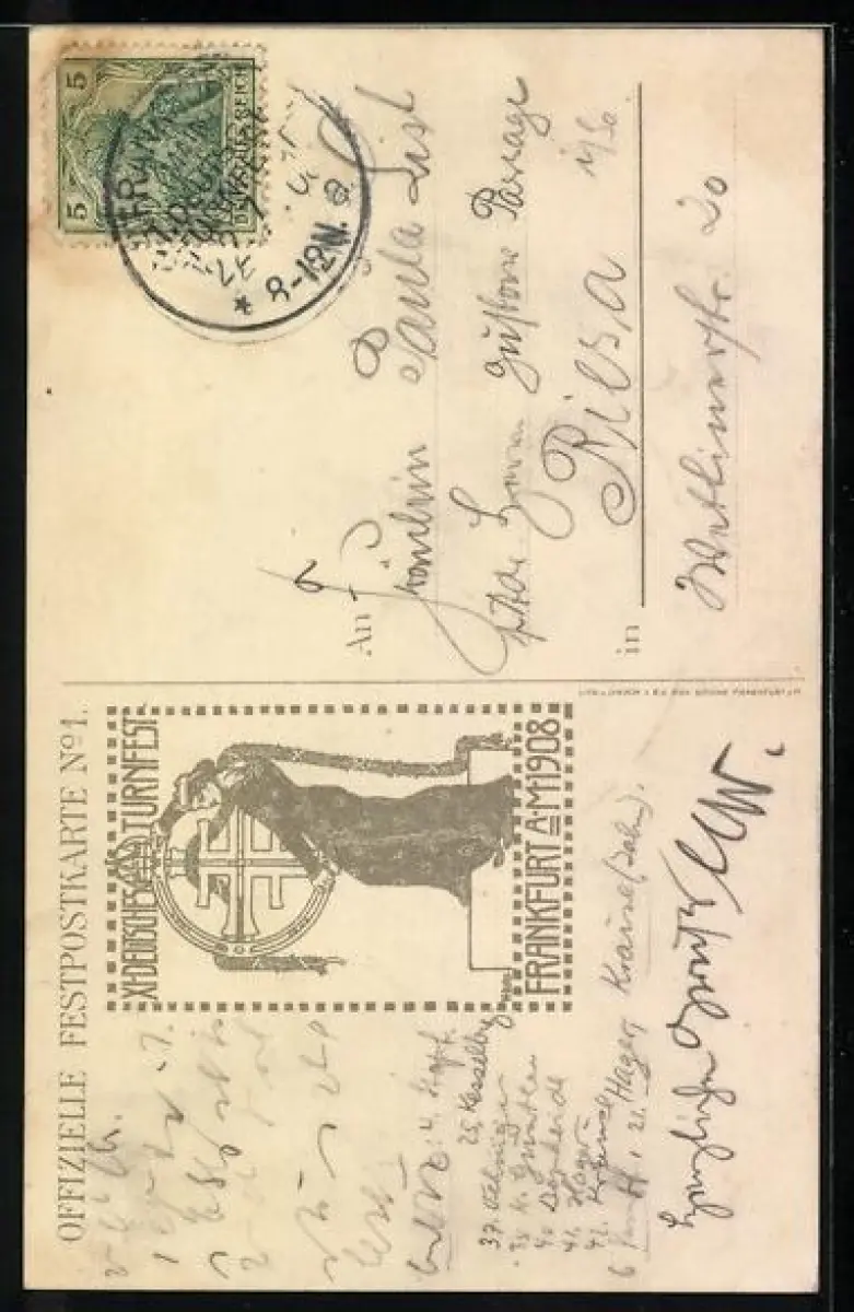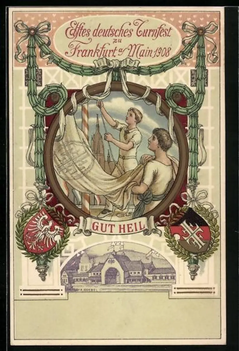 AK Elftes deutsches Turnfest zu Frankfurt /Main, 1908, junger Männer hissen Fahne