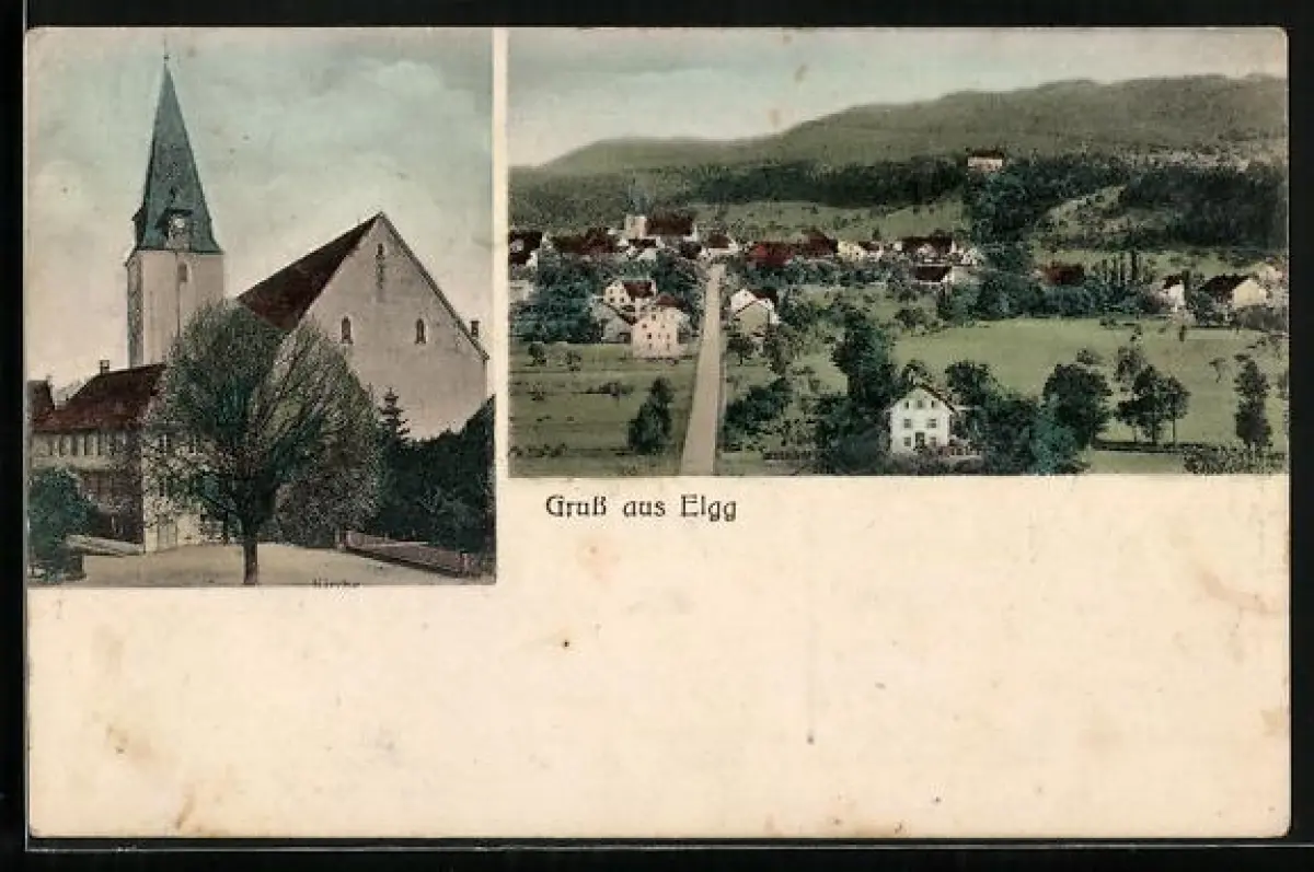 AK Elgg, Totalansicht aus der Vogelschau, Kirche