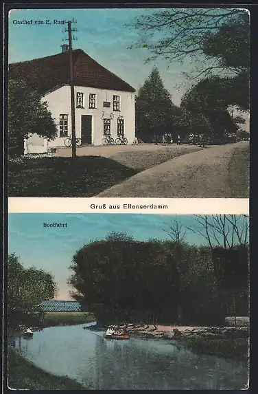 AK Ellenserdamm, Gasthof von E. Rust, Bootfahrt